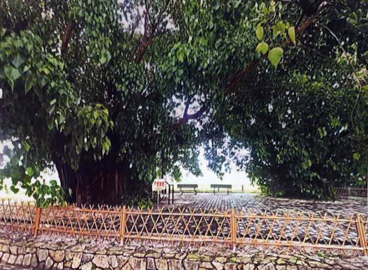 菩提树为桑科榕属落叶 或半落叶乔木,原产地印度。据史料记载,相传南北朝梁武帝天监元年 (公元502年)印度僧人 智药三藏从天竺国(印 度)出发携带菩提树苗 来中国传教。海上刮起 台风,突然狂风暴雨, 海浪滔天,迫于无奈在 广海东门灵湖登岸。搭 起简易茅棚暂作栖身, 在东门不远处象山脚下 种下一棵菩提树苗。从 此广东便有了第一颗善 提树。龙船岗村的菩提 树,便是当年灵湖寺那 標菩提树上剪枝栽植的。数百年来,它既 是美丽乡村的守护者,也是“海丝之路” 的见证者,也见证着家乡面貌的变化发展。